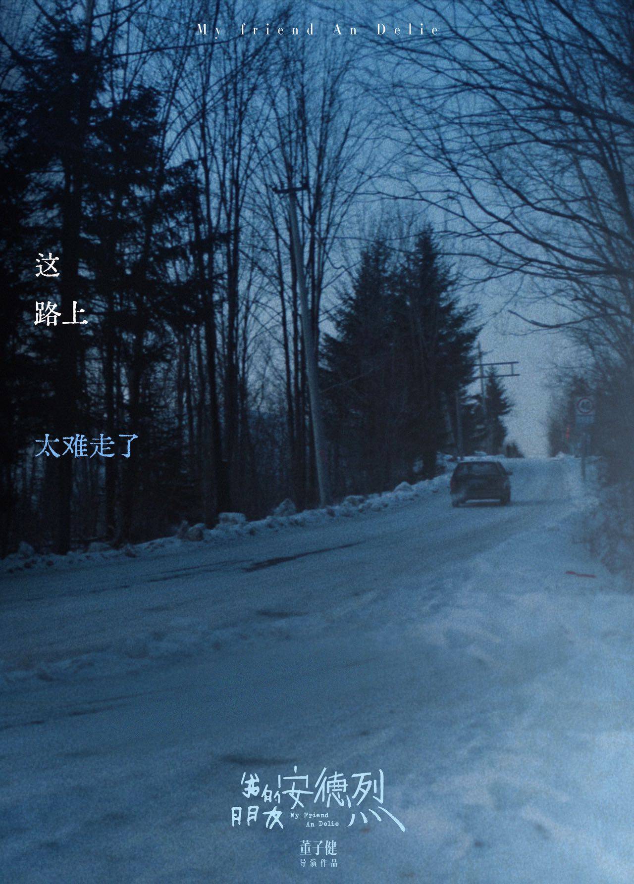 而与这份温暖回忆形成色彩对比的,是李默成年后回乡路上冷冽的蓝色调。这是采访中提到过,董子健特意设计的画面。他和安德烈行经在东北的雪原上,那是一种青灰的、近乎金属质感的蓝,像破败的钢铁厂,一个时代背景的更替。这种蓝色让观众瞬间便能共情到李默回乡路上,那份深入骨髓的疏离与孤独。