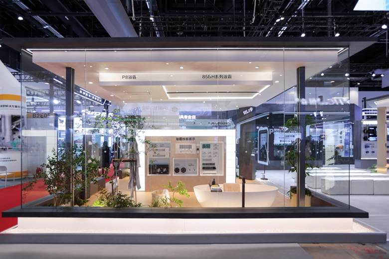 卫浴空间展现了完整丰富的浴霸产品矩阵,新品P8浴霸搭载智能恒温控制系统,带来沐浴全程温度恒定的舒适体验。同步展出的“玲瀧”净水及软水系统,以突破性紧凑型设计,大幅节省安装空间,优化空间利用率的同时为家庭提供健康优质的生活用水解决方案。